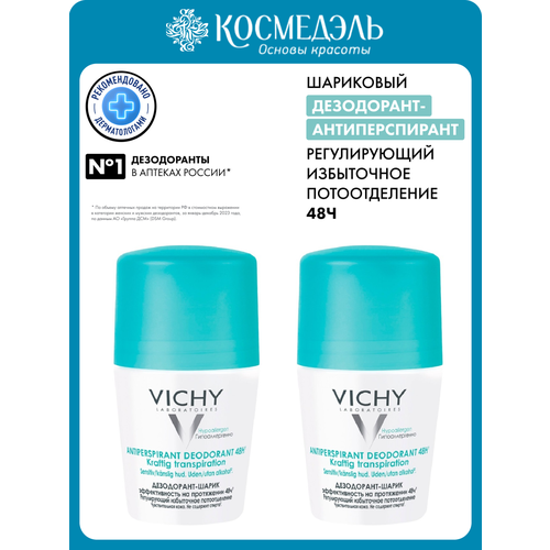 НАЙТИ ВЫГОДНЕЕ - Vichy Шариковый дезодорант, регулирующий избыточное потоотделение 48 часов, 2 х 50 мл