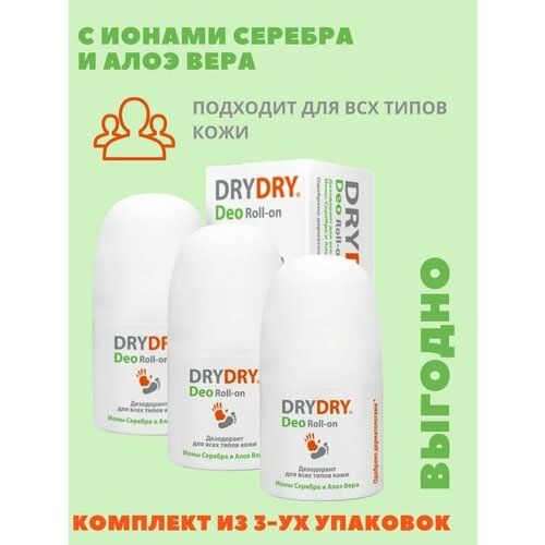 drydry deo roll-on - роликовый дезодорант для всех типов кожи с ионами серебра и алоэ вера. Ионы серебра борют распространение бактерий и не дают повиться неприятному запаху пота. Алоэ вера оберегает кожу от раздражения. В результате вы дарите себе комфорт и свежесть на весь день после использования дезодоранта. Благодаря натуральным компонентам, входящим в состав средства, кожа после нанесения становится нежной, увлажненной и ухоженной, а алоэ вера дополнительно предохраняет ее от раздражения. Не содержит солей алюминия. Подходит для женщин и мужчин. Не пачкает одежду, не оставляет ощущения липкости. Подходит для частого использования.