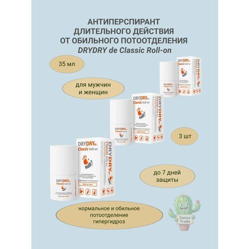 НАЙТИ ВЫГОДНЕЕ - Drydry de classic roll-on антиперспирант/средство длительного действия от обильного потоотделения 35 мл 3уп