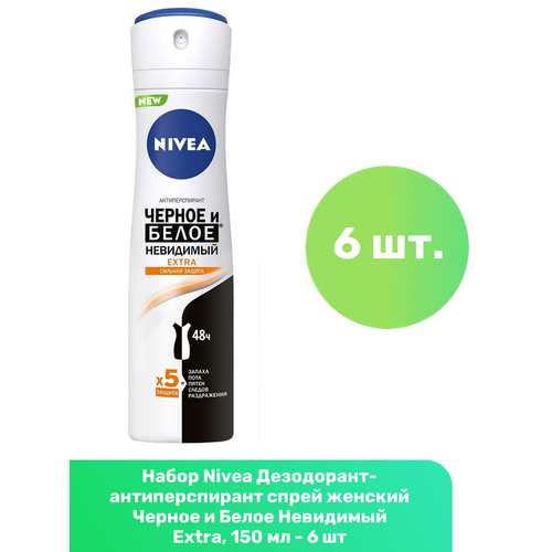 НАЙТИ ВЫГОДНЕЕ - Nivea Дезодорант-антиперспирант спрей женский Черное и Белое Невидимый Extra, 150 мл - 6 шт