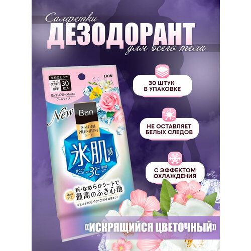 НАЙТИ ВЫГОДНЕЕ - LION Дезодорант для тела в форме салфеток Ban Premium Refresh Shower Sheets(«Искрящийся цветочный»)30 шт.