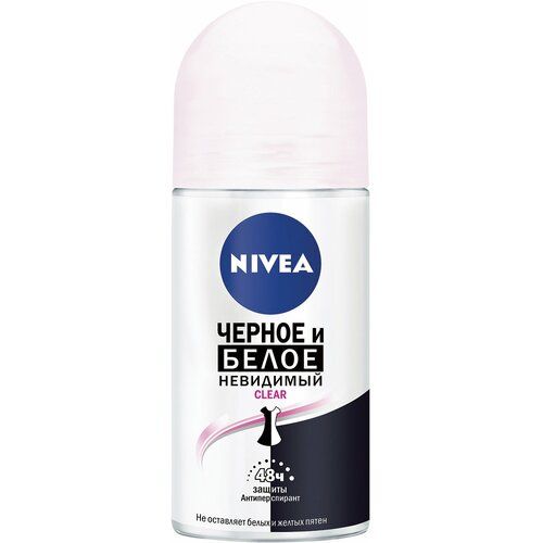 Дезодорант-антиперспирант Nivea Черное и Белое Невидимый Clear предотвращает появление белых пятен на темной одежде и желтых пятен на светлой одежде. Черная одежда остается черной, а белая одежда дольше остается белой. Уникальная формула имеет 5 факторов защиты: от запаха, пота, пятен, следов и раздражения. Защищает кожу подмышек в течение 48 часов от пота и неприятного запаха. Действует даже в стрессовых ситуациях или на занятиях спортом. Этот чистый, кристальный и яркий сладковатый аромат - выражение естественной женственности.Шариковый антиперспирант даёт в 2 раза больше применений, чем спрей