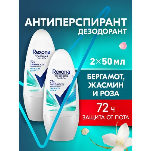 НАЙТИ ВЫГОДНЕЕ - Антиперспирант шариковый Rexona усиленная защита 72ч уверенности свежесть душа 50 мл ( 2 шт )
