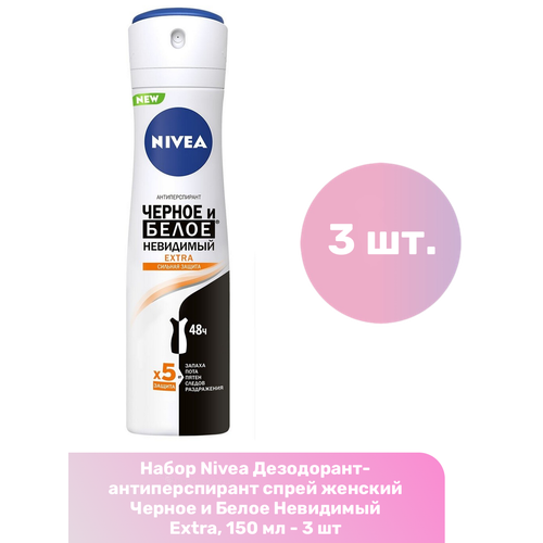НАЙТИ ВЫГОДНЕЕ - Nivea Дезодорант-антиперспирант спрей женский Черное и Белое Невидимый Extra, 150 мл - 3 шт