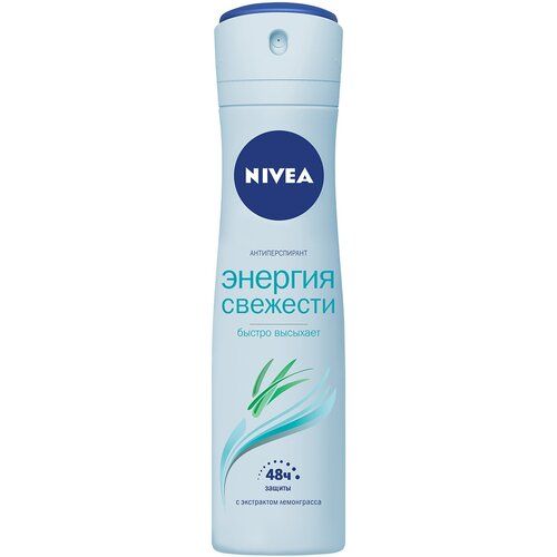 Попробуй дезодорант-антиперспирант спрей для женщин NIVEA «Энергия свежести» и ощути свежий аромат лемонграсса и заряд свежести на целый день. Дарит ощущение свежести, которое остается с Вами дольше, чем просто на пару часов. Антиперспирант борется с бактериями**, вызывающими запах пота и обеспечивает надежную защиту от неприятного запаха на 48 часов*. Антиперспирант быстро высыхает, не оставляя ощущения липкости на коже. Без этилового спирта в составе. Дерматологически протестировано.
