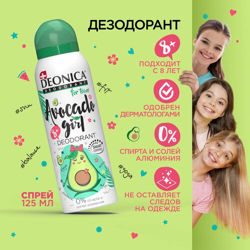 Deonica Дезодорант-антиперспирант Avocado Girl for Teens, спрей, флакон, 125 мл, 110 г