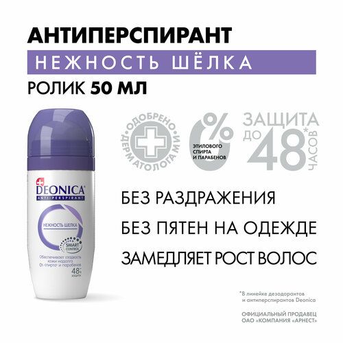 НАЙТИ ВЫГОДНЕЕ - Deonica Антиперспирант Нежность шелка, ролик, флакон, 50 мл, 8 г, 1 шт.