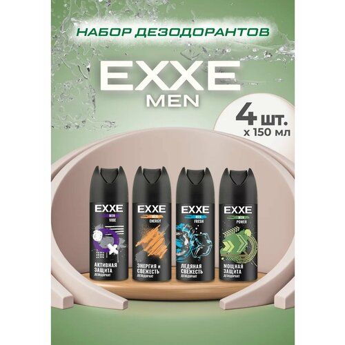 Дезодорант мужской спрей Дезодорант спрей еххе MEN 150 мл универсальный антиперспирант и аэрозоль. Набор дезодорантов из 4х видов. Дезиики Мощная формула обеспечивает ощущение свежести до 48 часов. дезодорант мужской создан специально для мужчин, обладает терпким ароматом мускуса и пряного кардамона, который сохраняется до двух суток, не перебивает аромат вашего парфюма. Специальная формула не оставляет следов на одежде и не приводит к появлению желтых пятен. В составе отсутствуют соли алюминия, поэтому дезодорант не оказывает токсичного влияния на эпидермис и не блокирует работу потовых желез. Продукт дерматологически протестирован. Дезодорант эксе MAN защита 48 ч подходит людям с чувствительной кожей и склонных к аллергии, раздражениям кожи. Входящие в состав эфирные масла оставляют на коже ощущение чистоты и свежести, даже если со времени душа прошло уже несколько часов и вы много двигались. Только ощущение сухой и чистой кожи в течение всего дня. Применение: хорошо встряхнуть перед использованием. Распылять в области подмышек с расстояния 15 см. Спрей для тела , аромат , запах , Мальчики , НЕ АКС , Эксе Набор для мужчин