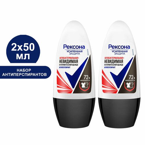 НАЙТИ ВЫГОДНЕЕ - Дезодорант REXONA Антибактериальная и невидимая защита на чёрном и белом, 50 мл (2 шт)