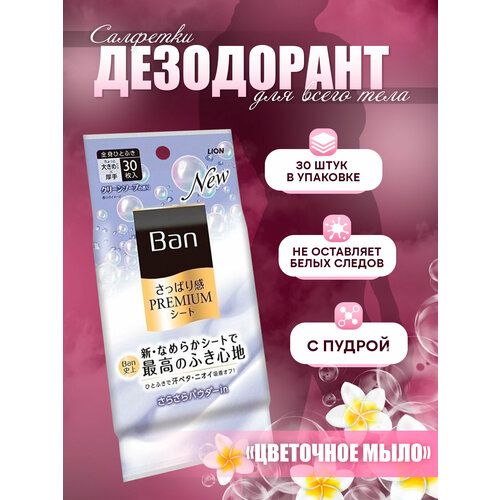 НАЙТИ ВЫГОДНЕЕ - LION Дезодорант для тела в форме салфеток Ban Premium Refresh Shower Sheets («Цветочное мыло») 30 шт.
