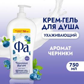 НАЙТИ ВЫГОДНЕЕ - Фа Крем-гель для душа женский Черничный Йогурт, 750 мл