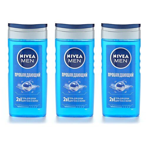 НАЙТИ ВЫГОДНЕЕ - Гель для душа мужской NIVEA MEN 2в1 Пробуждающий для тела и волос с морскими минераламипробуждающий, 250 мл, 3 шт.