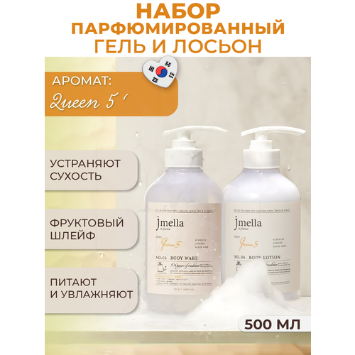 НАЙТИ ВЫГОДНЕЕ - Набор по уходу за кожей Jmella Queen 5 гель для душа и лосьон для тела, 2х500 мл