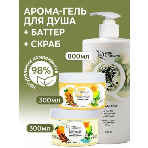 НАЙТИ ВЫГОДНЕЕ - Набор для душа Индекс Натуральности Пряный, гель, скраб и баттер