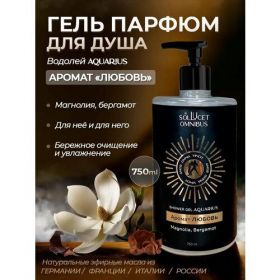 Парфюмированный гель для душа Аромат Любовь посвящен родившимся под Знаком зодиака Водолей. гель для душа Соллюсет (Sol Luset Omnibus - Солнце Светит Каждому) будет идеальным выбором для всех, кто ценит нежность и уход за собой.