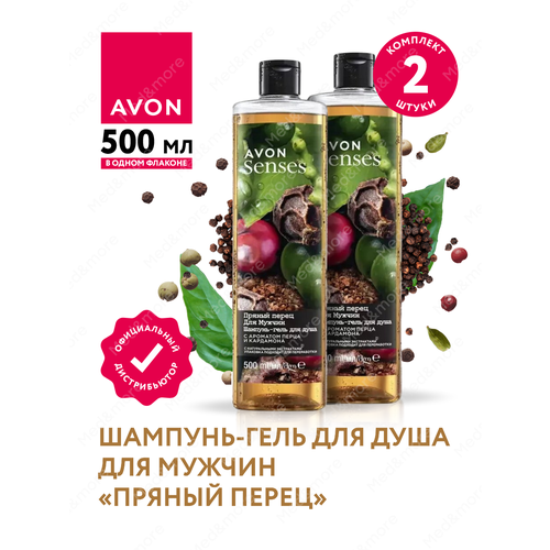 НАЙТИ ВЫГОДНЕЕ - Шампунь-гель для душа Avon Senses для мужчин Пряный перец 500 мл. х 2 шт.