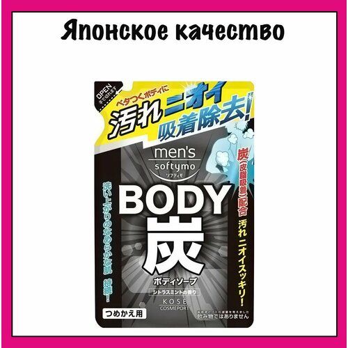 НАЙТИ ВЫГОДНЕЕ - KOSE COSMEPORT Мужской гель для душа с древесным углем, цитрус и мята, Глубокое очищение и уход Men's Softymo, 400 мл. (м/у)