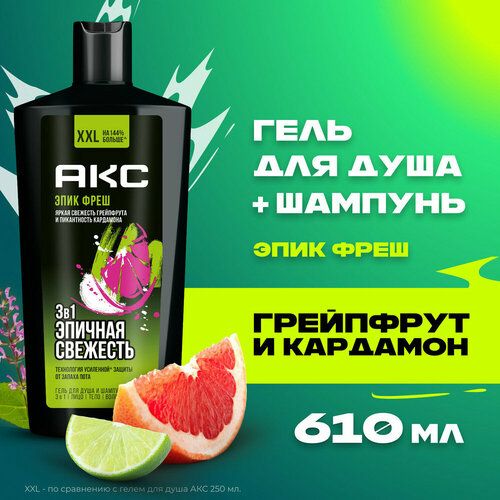 НАЙТИ ВЫГОДНЕЕ - AXE EPIC FRESH гель для душа и шампунь 3 в 1 с пребиотиками и увлажняющими ингредиентами, 610 мл