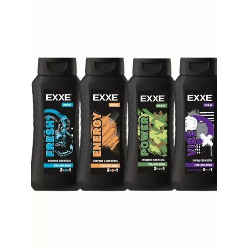 EXXE Men Гель для душа Мужской 2в1 (Power+ Vibe + Energy + Fresh) 4шт*400мл. Набор мужских гелей-шампуней для душа с современной эффективной формулой будет удачной покупкой средств по уходу за телом и волосами. Мужской гель для душа отлично пенится и тщательно очищает чувствительную кожу, отлично тонизирует тело после принятия душа, заряжает свежестью, увлажняет кожу, не оставляя ощущение сухости. Гель - шампунь для душа мужской эффективно справляется с очищением головы и волос, придает им гладкость и ухоженность. Свежие мужские ароматы придутся по вкусу и зрелым мужчинам и молодым людям, следящим за чистотой и свежестью тела и волос.