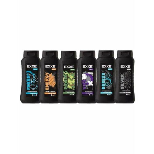 EXXE Men Гель для душа Мужской 2в1 (POWER+ VIBE + ENERGY + FRESH+BREEZE+SILVER) 6шт*400мл. Набор из мужских гелей-шампуней для душа с современной эффективной формулой будет удачной покупкой средств по уходу за телом и волосами. Мужской гель для душа отлично пенится и тщательно очищает чувствительную кожу, отлично тонизирует тело после принятия душа, заряжает свежестью, увлажняет кожу, не оставляя ощущение сухости. Гель - шампунь для душа мужской эффективно справляется с очищением головы и волос, придает им гладкость и ухоженность. Свежие мужские ароматы придутся по вкусу и зрелым мужчинам и молодым людям, следящим за чистотой и свежестью тела и волос.