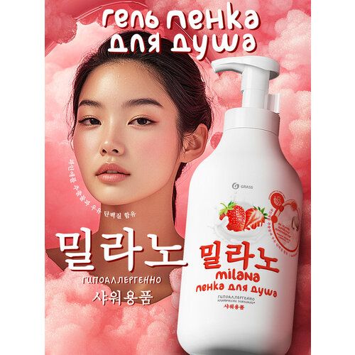 НАЙТИ ВЫГОДНЕЕ - Гель-пенка для душа Grass Milana с экстрактом клубники и молочными протеинамиклубника, 750 мл
