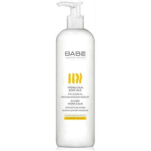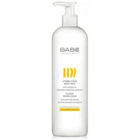 Увлажняющее молочко для тела - Babe Laboratorios Hydra-Calm Body Milk (500 ml). Увлажняющее молочко для тела с маслом жожоба для моментального комфорта. Тщательно ухаживать нужно не только за кожей лица, но и тела. Также важно подобрать качественное, эффективное и, что немало важное, безопасное средство для кожного покрова. Именно такой продукт предлагает косметический бренд из Испании Babe Laboratorios. Молочко для тела с эффектом увлажнения отличным образом будет ухаживать за кожей, делая ее красивой и здоровой. Формула Hydra-Calm Body Milk содержит ценные ингредиенты, хорошо увлажняющие и питающие кожу полезными веществами. Масло жожоба отлично стимулирует регенерацию клеток, делая кожу более бархатистой и шелковистой. Оно проникает в глубокие слои кожи, обволакивая ее пленкой, которая защищает от потери ценной влаги и предотвращает сухость и различные шелушения кожи. Сок алоэ имеет мощный увлажняющий эффект, что позволяет коже быть эластичной и невероятно гладкой на ощупь. Ромашка помогает отлично заживить мелкие ранки, делает кожу более мягкой и нежной. Продукт легко наносится и быстро впитывается, даря вам чувство неимоверного комфорта и защищенности. Активные компоненты: глицерин, увлажняющий комплекс ваве (алоэ, ромашка, аллантоин), масло жожоба. Способ применения: наносить легкими массажными движениями на кожу, использовать после каждого приема ванны или душа.