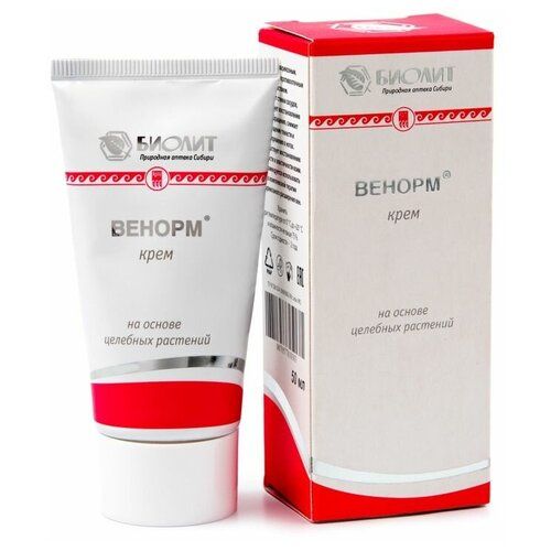 Венорм крем - мазь от варикозного расширения вен. Может использоваться как дополнительный компонент лечения и для профилактики заболевания. Натуральные ингредиенты обеспечивают фитотерапевтический, болеутоляющий, сосудоукрепляющий и противовоспалительный эффект.
