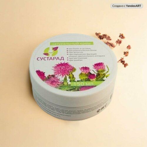 Сустарад - натуральный органический крем интенсивного проникающего действия на основе нативных остеобластных и хондроцитных клеток пантов алтайского марала, обогащенный млечным соком лекарственных растений, оказывающих противовоспалительное, болеутоляющее, ранозаживляющее, регенерирующее, восстанавливающее, противоинфекционное действие.