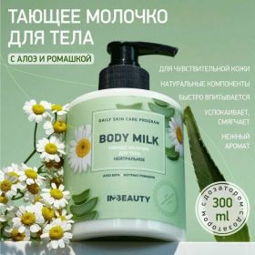 НАЙТИ ВЫГОДНЕЕ - IN2BEAUTY/ Тающее молочко для тела с алоэ вера, для сухой чувствительной кожи успокаивающее после загара, увлажнение после душа, крем для тела 300мл с дозатором