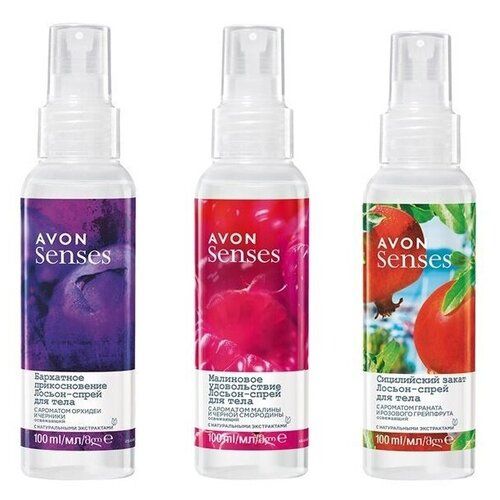 НАЙТИ ВЫГОДНЕЕ - AVON Senses Набор спреев для тела 3*100 мл (Орхидея и черника+ Малина и черная смородина + Гранат и розовый грейпфрут)