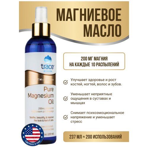 Skincare Zechstein Магниевое масло от бренда Trace minerals - это экологически чистый продукт, изготовленный на основе природных ингредиентов, отличный способ, чтобы восполнить запасы магния в организме. Чистое магниевое масло содержит хлорид магния, одну из лучших форм магния для местного применения, поскольку он чистый, эффективный и быстро впитывается в кожу. Магний, входящий в состав масла, бережно ухаживает за кожей: защищает, смягчает, увлажняет и питает кожу. Исследования, проводившиеся с целью изучить пользу магния для здоровья и его возможное применение, показали, что магний поддерживает здоровье кожи, разглаживает и удаляет излишки кожного жира. Магний также улучшает внешний вид кожи, уменьшая последствия от воздействия факторов окружающей среды, которые проявляются в виде разных дефектов кожи. Попробуйте лосьон с чистым магнием уже сегодня Содержит 200 мг элементарного магния в 10 распылениях. Магниевое масло улучшает состояние кожи, делая ее гладкой и привлекательной. Полностью натуральный концентрированный продукт от самого популярного бренда в Америке, выпускающего жидкий магний Распылить на чистую кожу 10 раз и как следует втирать массажными движениями, пока средство полностью впитается. Вместе с этим должно прекратиться первоначальное жжение. При необходимости тщательно смойте лосьон через 20-30 минут и нанесите увлажняющее средство.