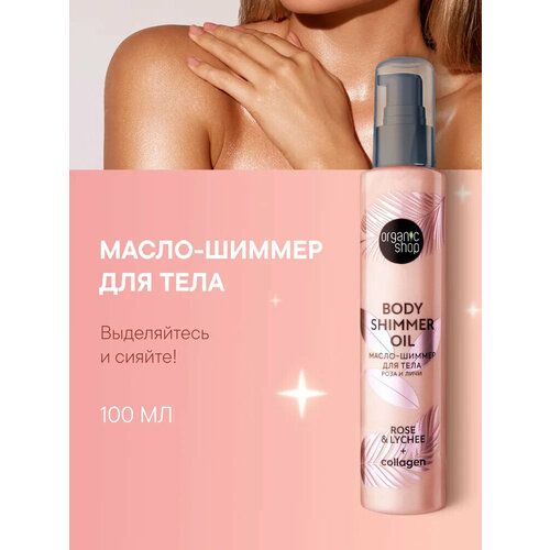 НАЙТИ ВЫГОДНЕЕ - Масло-шиммер Organic Shop Shimmers для тела Роза и Личи, 100 мл