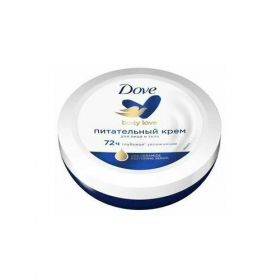 В мире Dove красота — это источник уверенности в себе, а не беспокойства. Миссия бренда — дать новому поколению возможность расти в атмосфере позитивного отношения к собственной внешности. Именно поэтому Dove создаёт продукты, которые помогают поддерживать Вашу естественную красоту день за днём, заботясь о Вашей коже. Универсальный питательный крем Dove – это продукт, который подойдёт для ежедневного ухода за Вашей кожей.Крем Dove Питательный содержит активный увлажняющий комплекс, обогащенный родственными коже компонентами NutriDuo. Усиленные натуральными маслами увлажняющие и питающие ингредиенты благотворно воздействуют на состояние кожи сразу по нескольким направлениям: помогают ей поддерживать необходимый уровень увлажненности в течение дня, эффективно удерживая влагу внутри эпидермиса, питают для восстановления и укрепления ее естественного липидного барьера. Крем Dove отлично смягчает, увлажняет в течение 72 часов* и разглаживает кожу, делает её ухоженной и естественно сияющей. Его обволакивающая текстура придётся кстати в любой сезон, ведь наша кожа нуждается в особенной заботе и в жаркое лето, и в холодную зиму. А удобная форма и размер баночки большого формата 150 мл позволяют всегда носить её с собой и использовать по мере необходимости. Правильное и регулярное питание кожи надолго устраняет сухость, покраснения и шелушение. Крем имеет нежную текстуру и легко впитывается, бережно увлажняя и питая, не оставляя ощущения липкости и жирности. Подходит для всех типов кожи.