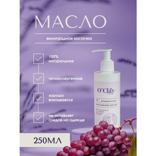 НАЙТИ ВЫГОДНЕЕ - O'Clay 100% натуральное косметическое массажное масло виноградных косточек для лица и тела 250мл