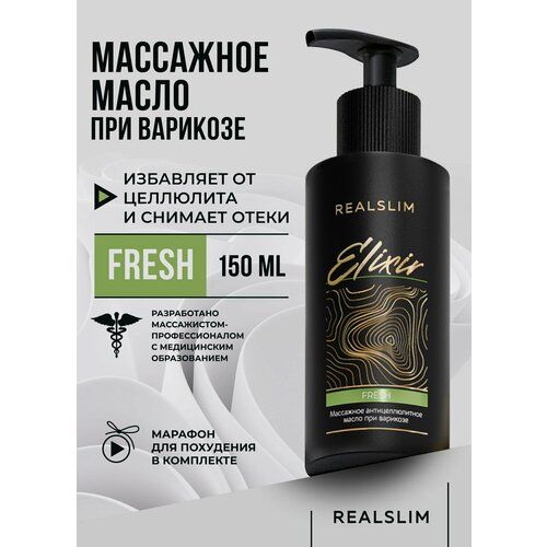 НАЙТИ ВЫГОДНЕЕ - Массажное масло для похудения Elixir FRESH, подходит при варикозе, от растяжек при беременности 150 мл
