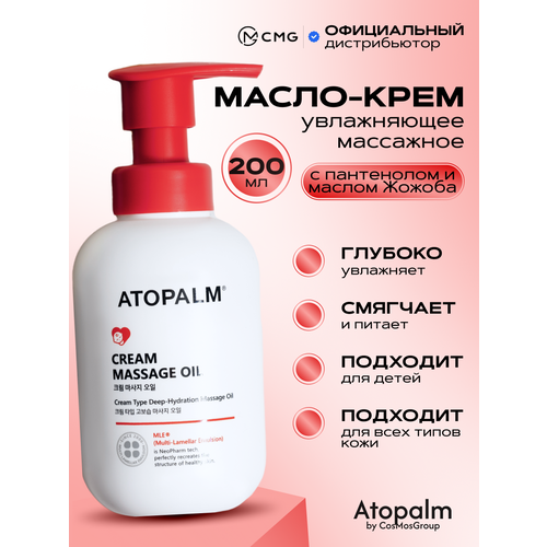 Масло Atopalm Cream Massage Oil — это масло с нежной кремовой текстурой, которое тает при соприкосновении с кожей, отлично подходит для детского массажа. Глубоко увлажняет, смягчает и питает, не оставляя липкости. Ускоряет заживление, снижает чувствительность.