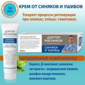 НАЙТИ ВЫГОДНЕЕ - Крем от синяков, ушибов, отёков с бадягой и Д-Пантенолом Доктор Мясников 50 мл. НПО ФораФарм.