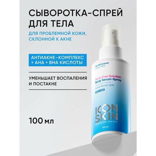 НАЙТИ ВЫГОДНЕЕ - Спрей сыворотка для проблемной кожи тела с AHA+BHA-кислотами с противовоспалительным эффектом ICON SKIN RE: PROGRAM, 100 мл
