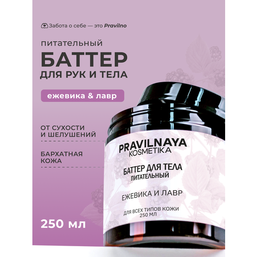 НАЙТИ ВЫГОДНЕЕ - Парфюмированный крем баттер для тела Pravilnaya Kosmetika, питательный и смягчающий, Ежевика & Лавр, 250 мл.