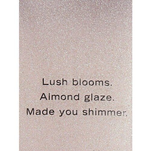 Оригинальный парфюмированный лосьон для тела от американского бренда Victoria's Secret с ароматом пышного цветения и миндальной глазури, с эффектом мерцания. Уникальная формула лосьона обогащена увлажняющими кожу ингредиентами. Средство быстро впитывается, не оставляет липкости и жирных следов на одежде. Имеет стойкий приятный фруктовый аромат, который остается на коже в течение всего дня, а легкий шиммер создает красивое мерцание за счет мельчайших блесток. Идеально подходит для ежедневного использования в любое время года.