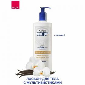 Увлажняющий лосьон для тела AVON с мултибиотиками и экстрактом ванили - это средство отлично увлажняет сухую кожу тела, рук и ног. Нежный увлажняющий лосьон avon с мультибиотиками и ванилью обеспечит деликатный уход для твоей кожи. Лосьон для тела подарит длительное увлажнение, смягчит и разгладит кожу. Идеально подходит для сухой и чувствительной кожи. Действие лосьон женский : с формулой мультибиотиками*, экстрактом ванили и витамином Е . Лосьон для женщин делает кожу мягкой и гладкой, а также бережный уход и длительное увлажнение. Молочко для тела с мултибиотиками и экстрактом ванили, идеально подойдет для всей семьи, даже самых маленьких.