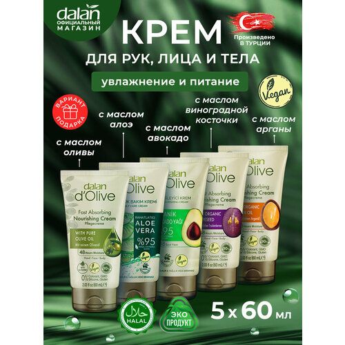 НАЙТИ ВЫГОДНЕЕ - Крем для рук, лица и тела Dalan d'Olive, Натуральный турецкий Увлажняющий и Питательный, Подарочный набор 5 шт х 60 мл