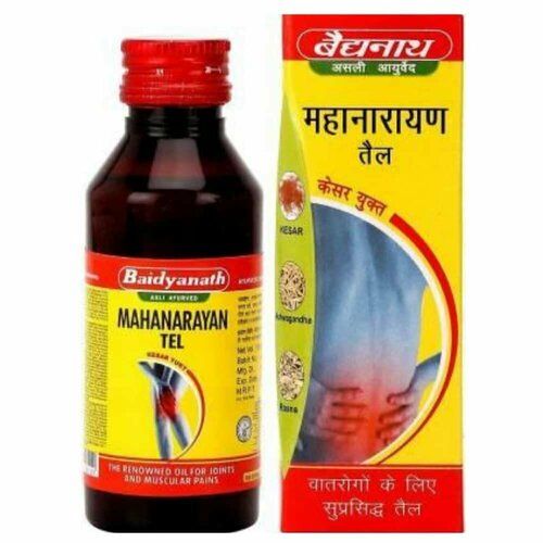 Масло массажное Маханараян Тейл (Mahanarayan Tel Baidyanath) боль в мышцах и при растяжении связок - мощное обезболивающее и противовоспалительное аюрведическое средство для лечения хронических и острых воспалений в суставах и позвоночнике, а также быстро облегчит боль в мышцах и при растяжении связок и сухожилий.
