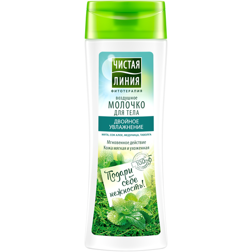 Молочко для тела чистая линия "Мята и сок алоэ" обеспечивает бережный уход за кожей, увлажняет, смягчает и устраняет ощущение сухости.