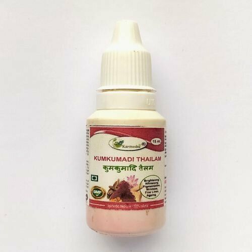 Масло кумкумади тайлам Кармешу Karmeshu 15мл - это королевское средство по уходу за кожей лица и омоложению, которое было впервые описано 8 столетий назад врачом Вабхагатой, автором «Аштанга Хридайя».