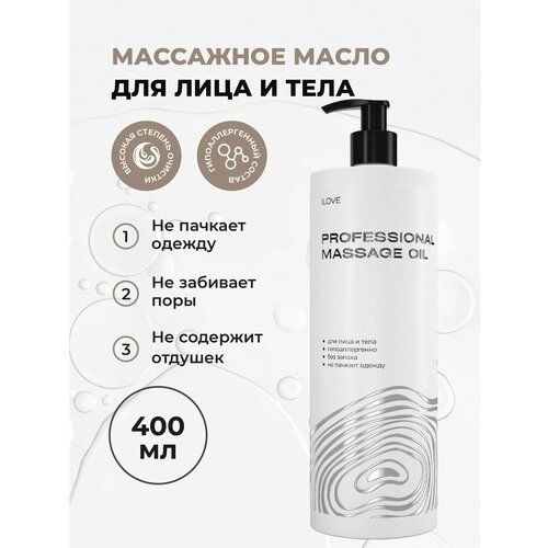 Главные преимущества косметического масла ILOVE: подходит для всех видов массажа лица и тела, а также беременным и детям, не забивает поры, не пачкает белье и одежду, гипоаллергенное, полезно для увядающей и сухой кожи, без запаха и цвета. Универсальный объем - 400 мл с практичным дозатором, который помогает сэкономить расход средства.