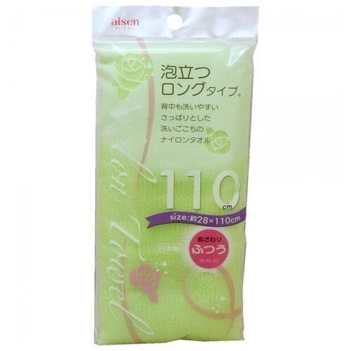 НАЙТИ ВЫГОДНЕЕ - Aisen Мочалка средней жесткости, удлиненная салатовая 28Х110см – Awatatsu, 1шт