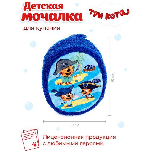 НАЙТИ ВЫГОДНЕЕ - Мочалка детская Три кота «Пиратики» размер 15х10см
