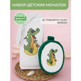 НАЙТИ ВЫГОДНЕЕ - Набор мочалок T&Z Крокодильчик, для купания, хлопок, гипоаллергенные
