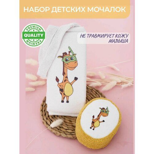 НАЙТИ ВЫГОДНЕЕ - Набор мочалок T&Z Жирафики, для купания, хлопок, гипоаллергенные, жёлтые/белые